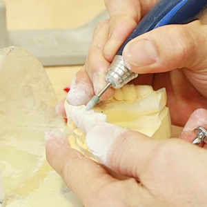 歯科技工士が常駐当院は歯科技工士が丁寧に微調整し、一人ひとりのお口にあった入れ歯や義歯を製作します。